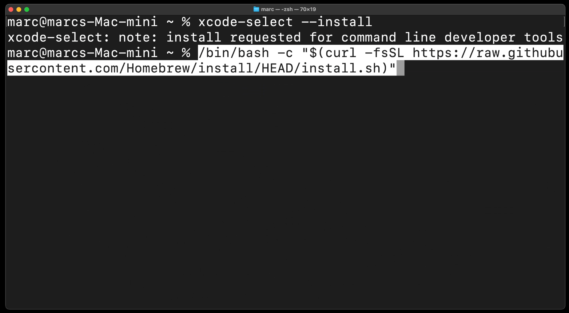 Achtung! Mein User hier heißt marc und deswegen sind deine drei Befehle wahrscheinlich ein bisschen anders!