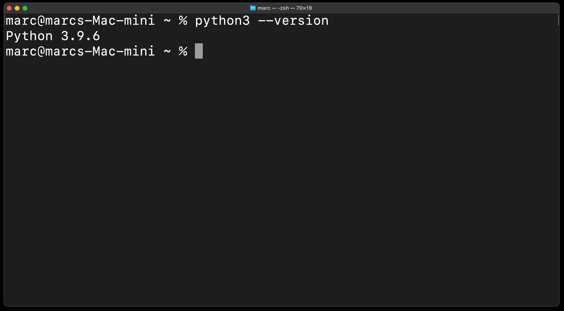 Auf macOS sollte Python schon vorinstalliert sein, also musste hier nichts machen. Um zu schauen, ob es auch wirklich auf deinem Mac installiert ist, gebe diesen Befehl ein: