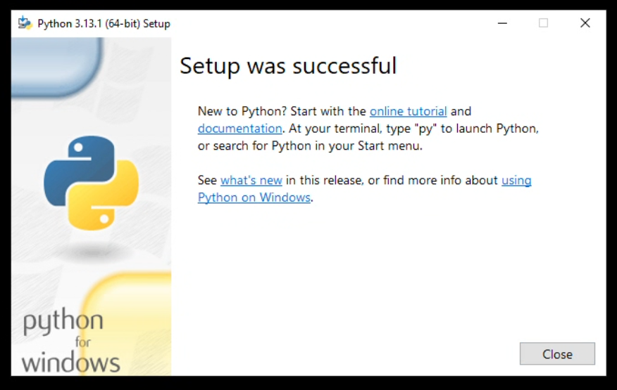 Fertig! Zum Testen gebe python --version ein, um zu schauen ob es auch richtig installiert wurde.