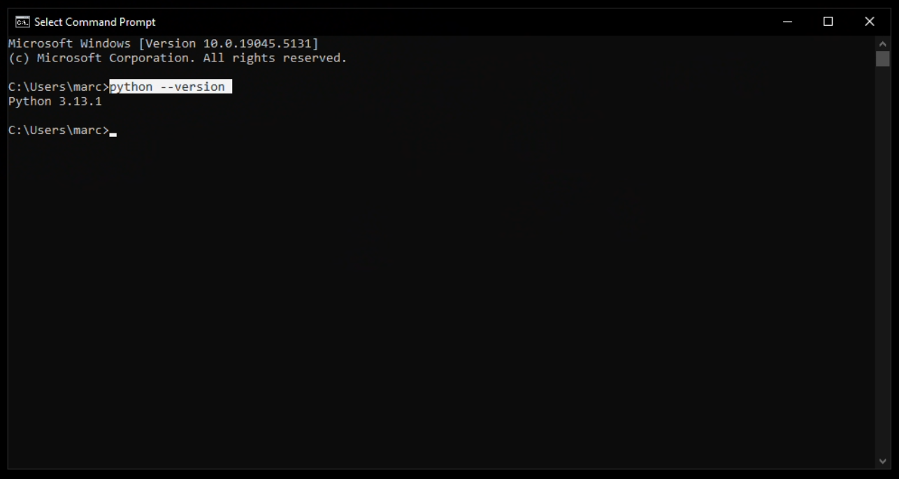 Um sicher zu gehen ob Python auch funktioniert gebe python --version ein,