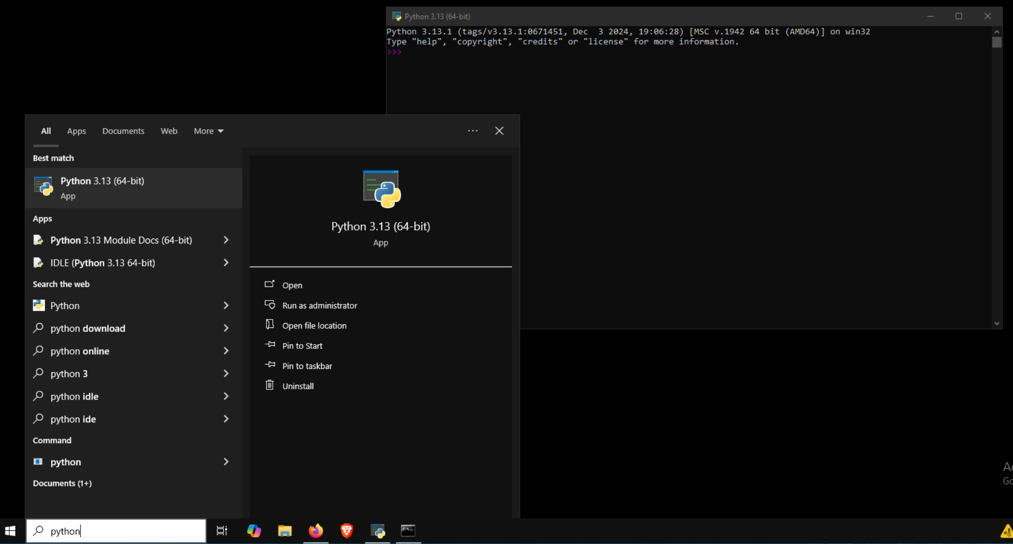 Alternativ kannst du auch Python schon vom Windows Startmenü öffnen,